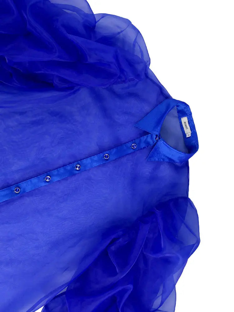 AOMEIDRESS Elegant Two Piece Set Sheer Mesh Puff Sleeve Evening Party - Blue / S is backordered and will ship as soon as it is back in stock.