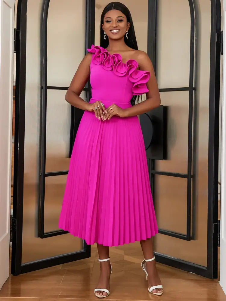 AOMEIDRESS One Shoulder A Line Pleated Party Dresses Ruffle Detail