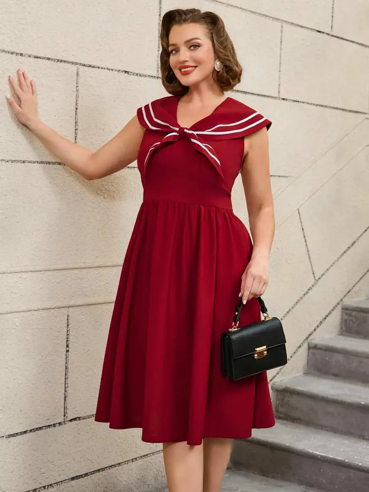 AOMEIDRESS 50s Swing Dress Sleeveless A Line College Style Dress Wine / S