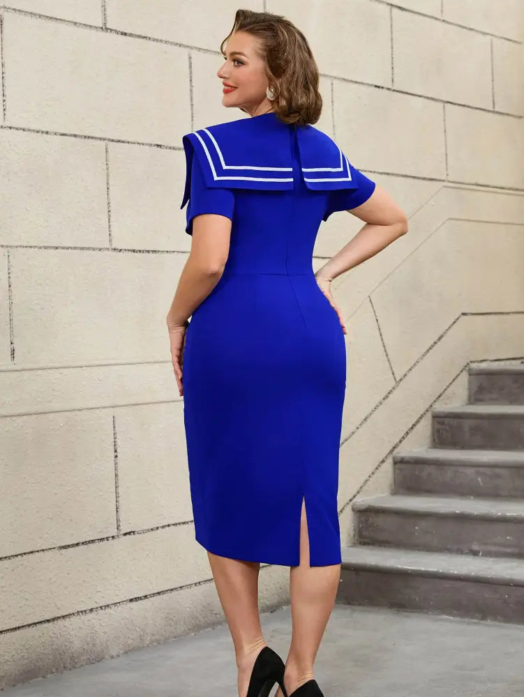 AOMEIDRESS Easter Church Dress Turn Down Collar Bodycon Style - Blue / S is backordered and will ship as soon as it is back in stock.