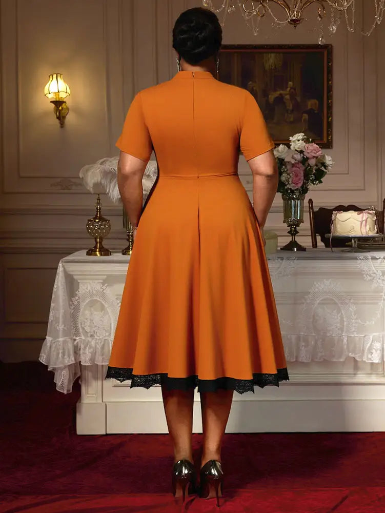 AOMEIDRESS Elegant Brown A Line Midi Church Dress With Lace Trim Button - Brown / S is backordered and will ship as soon as it is back in stock.