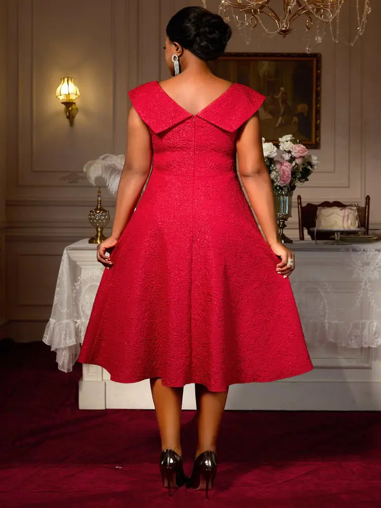 AOMEIDRESS 50s Swing Dress Boat Neck A Line Plus Size Red Prom Dress
