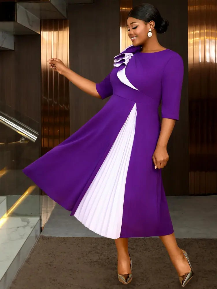 AOMEIDRESS Church Clothes for Women Floral Applique Pleated Gown - S / Purple is backordered and will ship as soon as it is back in stock.