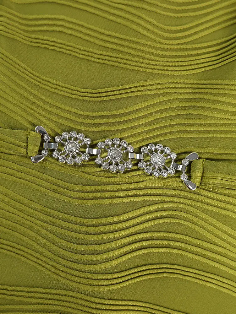 AOMEIDRESS Elegant Green Knit Dress Organza Ruffle Sleeve For Party