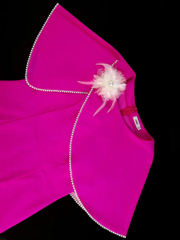 AOMEIDRESS Elegant Midi Beading Feather Cape Dress for Wedding Guest - Rose / S is backordered and will ship as soon as it is back in stock.