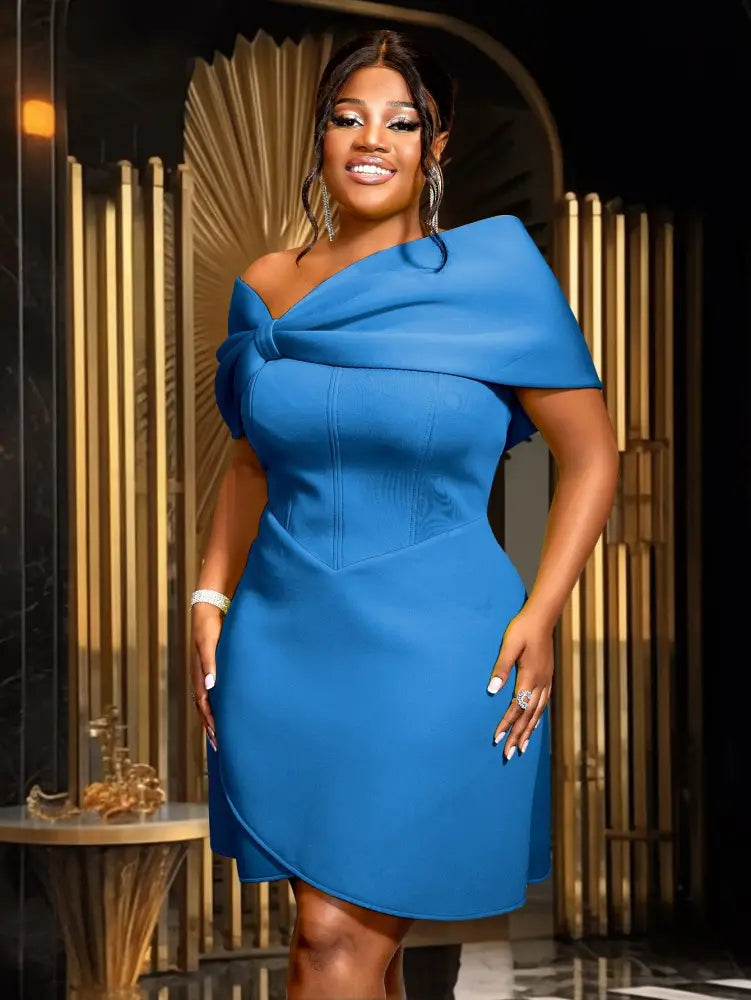 AOMEIDRESS High Waist A Lline Dress Off Shoulder Big Bow Asymmetrical