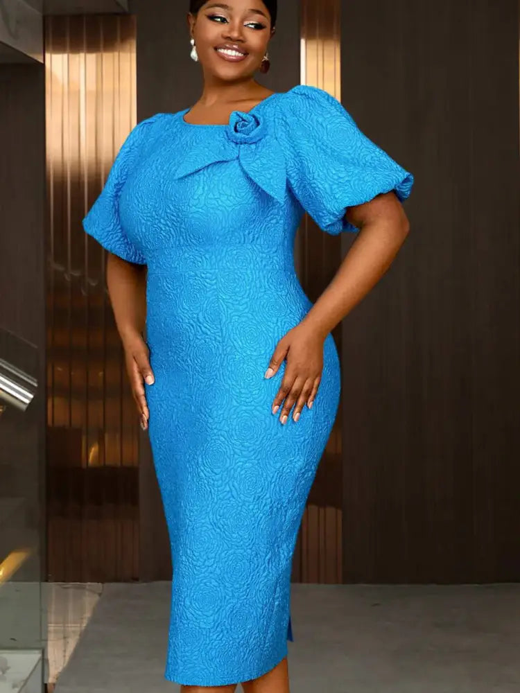 AOMEIDRESS Summer Outfits for Women 3D Flower Bubble Sleeve - Blue / S is backordered and will ship as soon as it is back in stock.