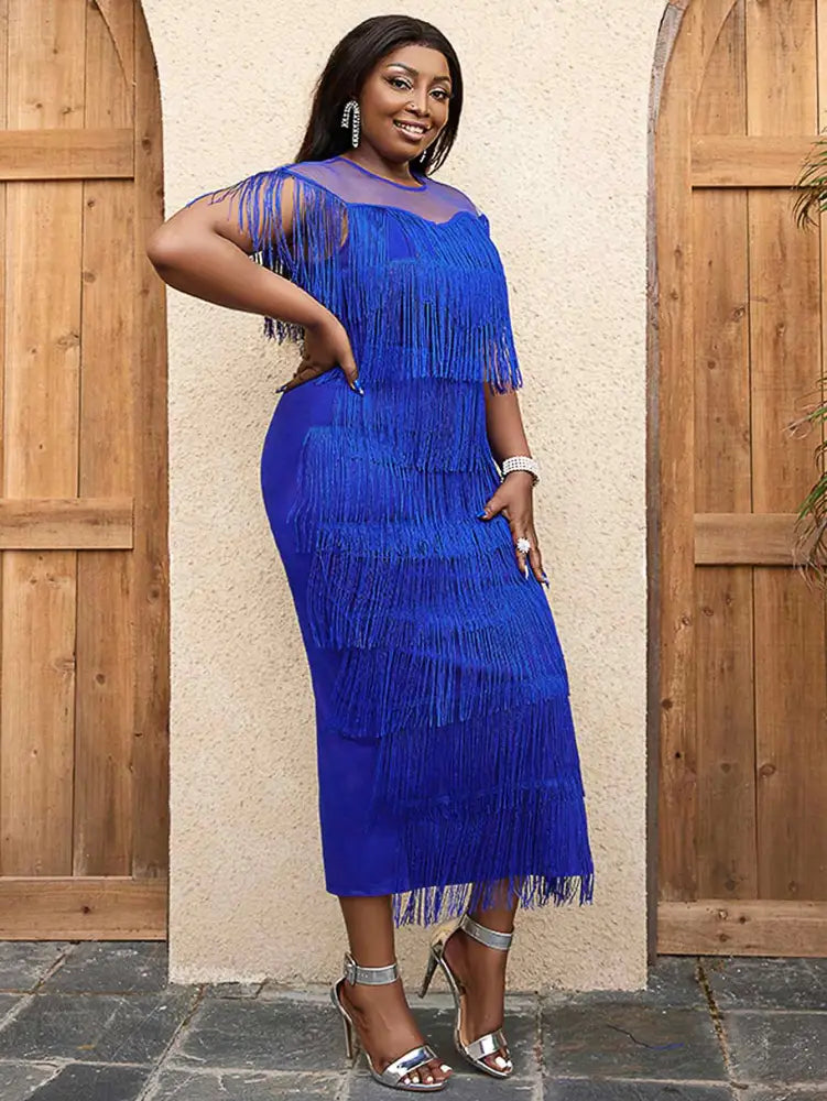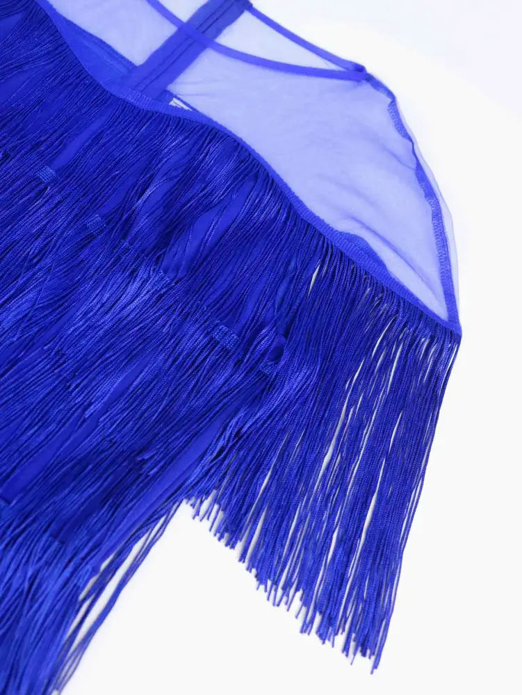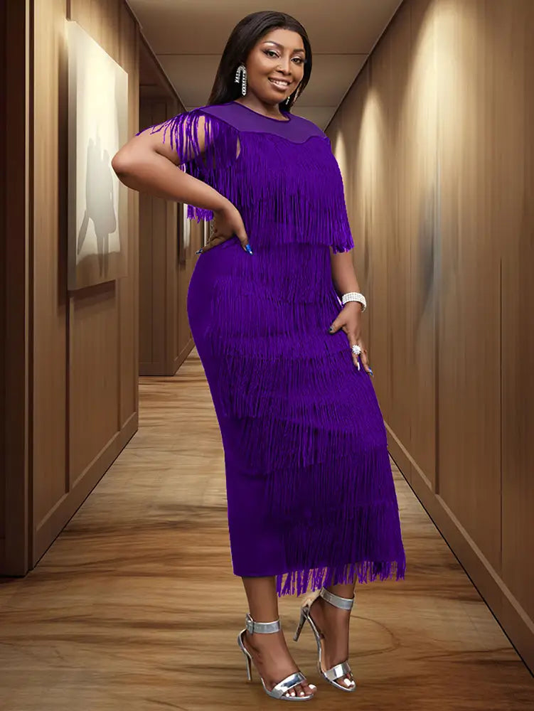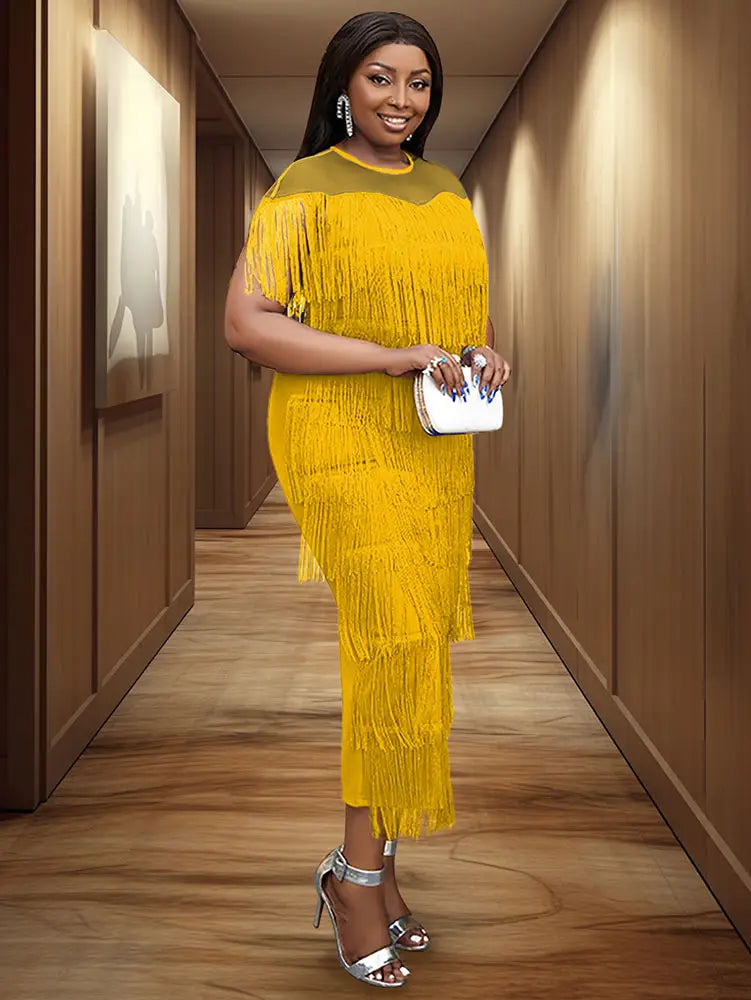 AOMEIDRESS Tulle Party Dress for Women Patchwork Tassel Fringe