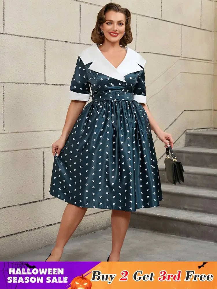 AOMEIDRESS Floral Print Turn Down Collar Short Sleeve A Line Dress