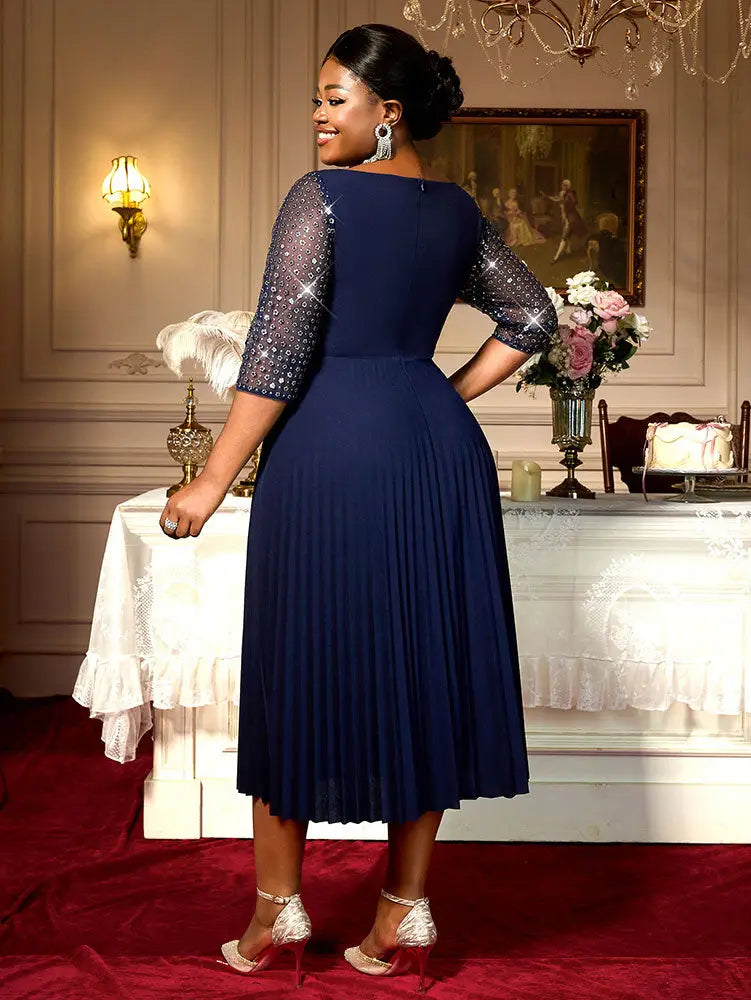 AOMEIDRESS Holiday Party Outfits For Women Sequins Mesh Elegant Dress Navy / 0XL