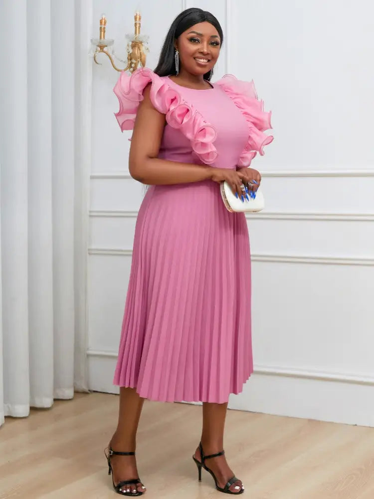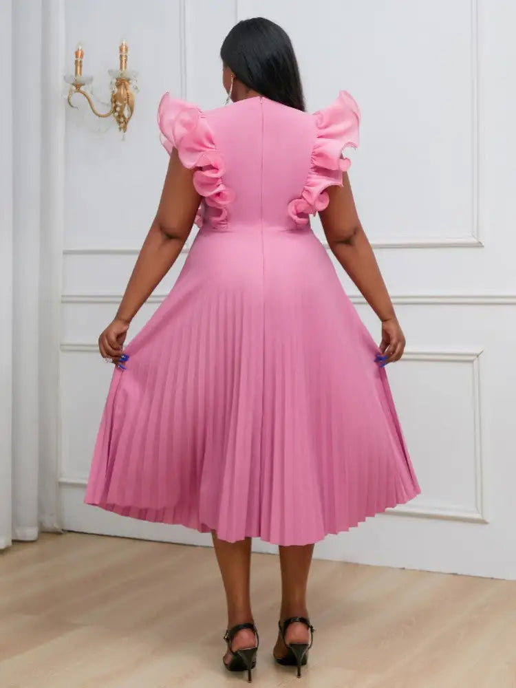 AOMEIDRESS A Line Ruffles Pleated Bodycon Dress for Women Pink
