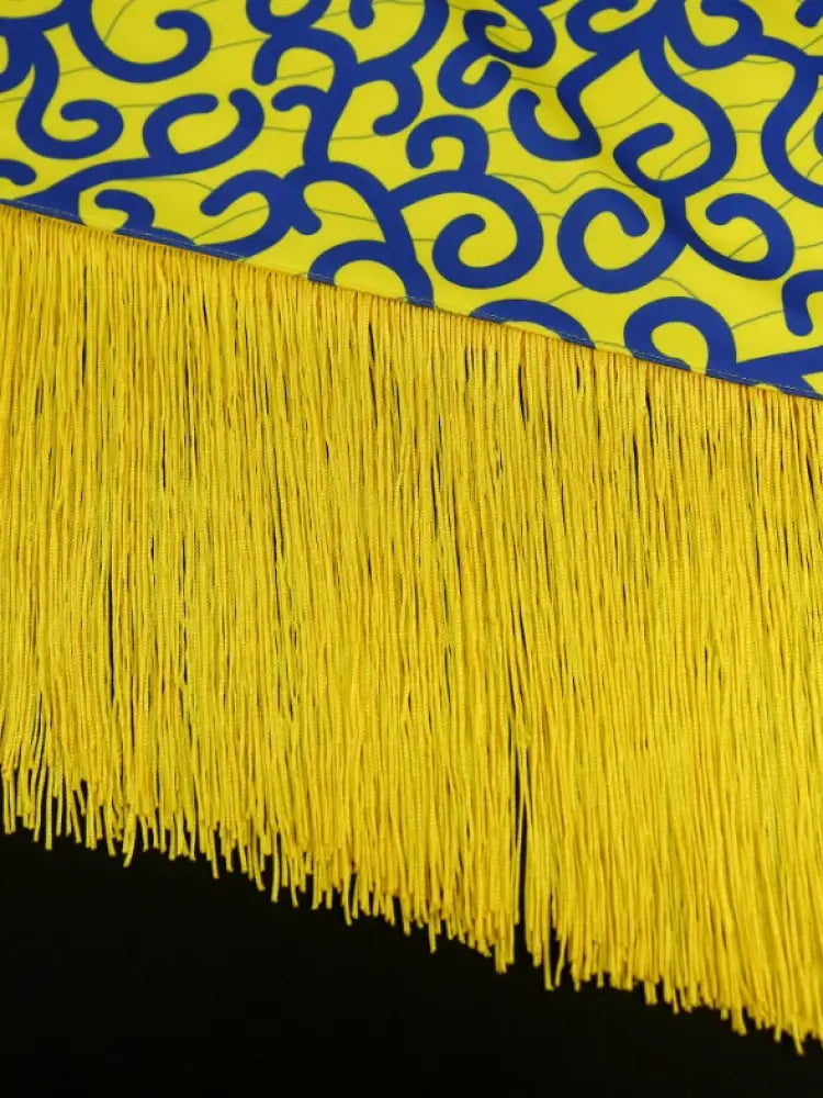AOMEIDRESS Printed V Neck Tassel Sleeve Asymmetrical Bodycon Dress - Yellow / 0XL is backordered and will ship as soon as it is back in stock.