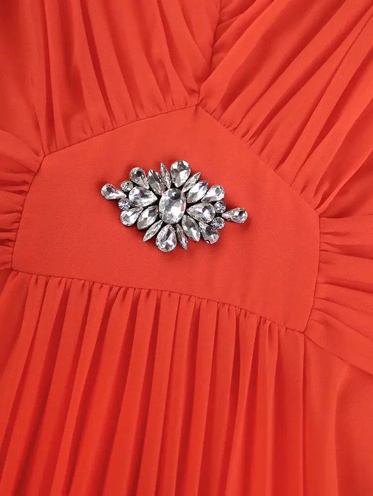 AOMEIDRESS Elegant A Line Maxi Pleated Short Sleeve Dress For Office - Orange / S is backordered and will ship as soon as it is back in stock.