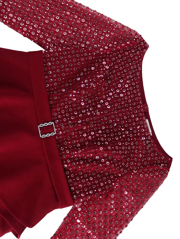 AOMEIDRESS Elegant Sequins Midi Package Hip Peplum Wedding Guest Dress - Wine / S is backordered and will ship as soon as it is back in stock.