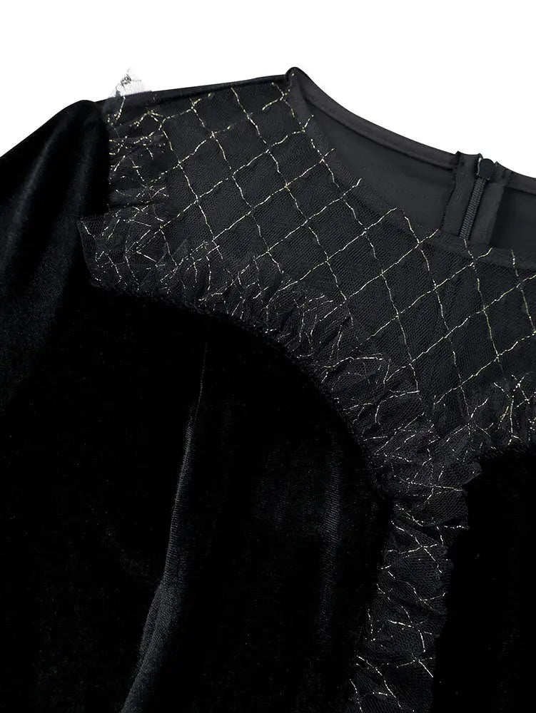 AOMEIDRESS Elegant Black Velvet Dress Tulle Bodycon Evening Party Black / S