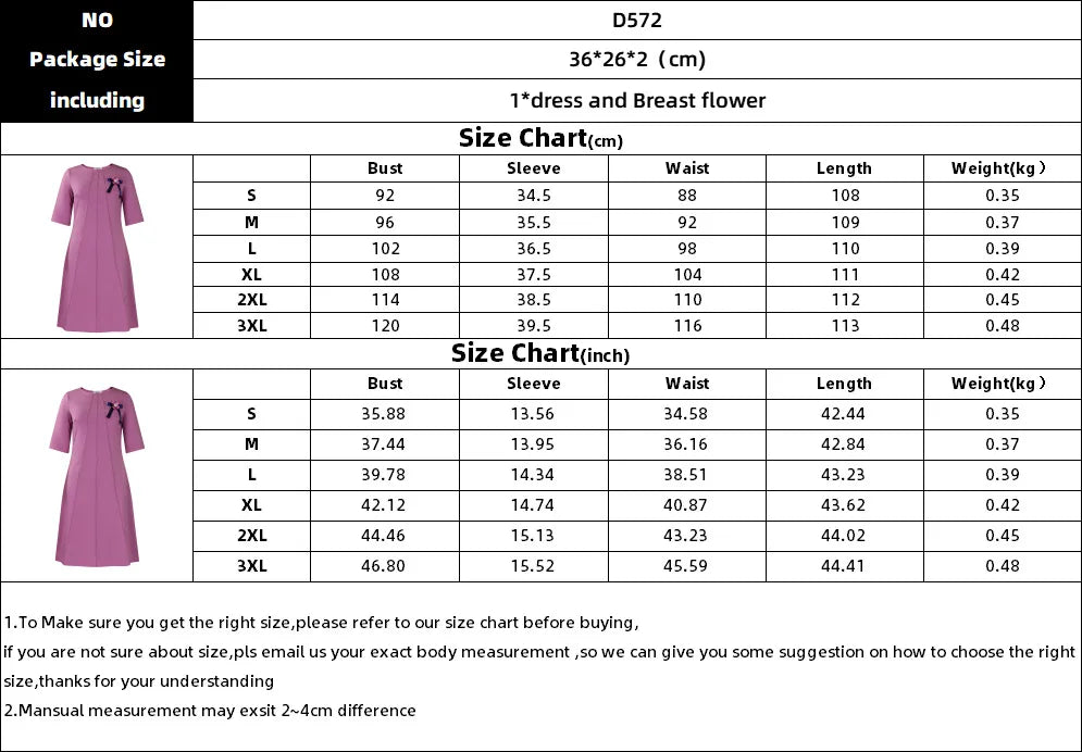 Elegant Women A Line Dress O Neck Short Sleeves Front Pleats with Bow Brooch