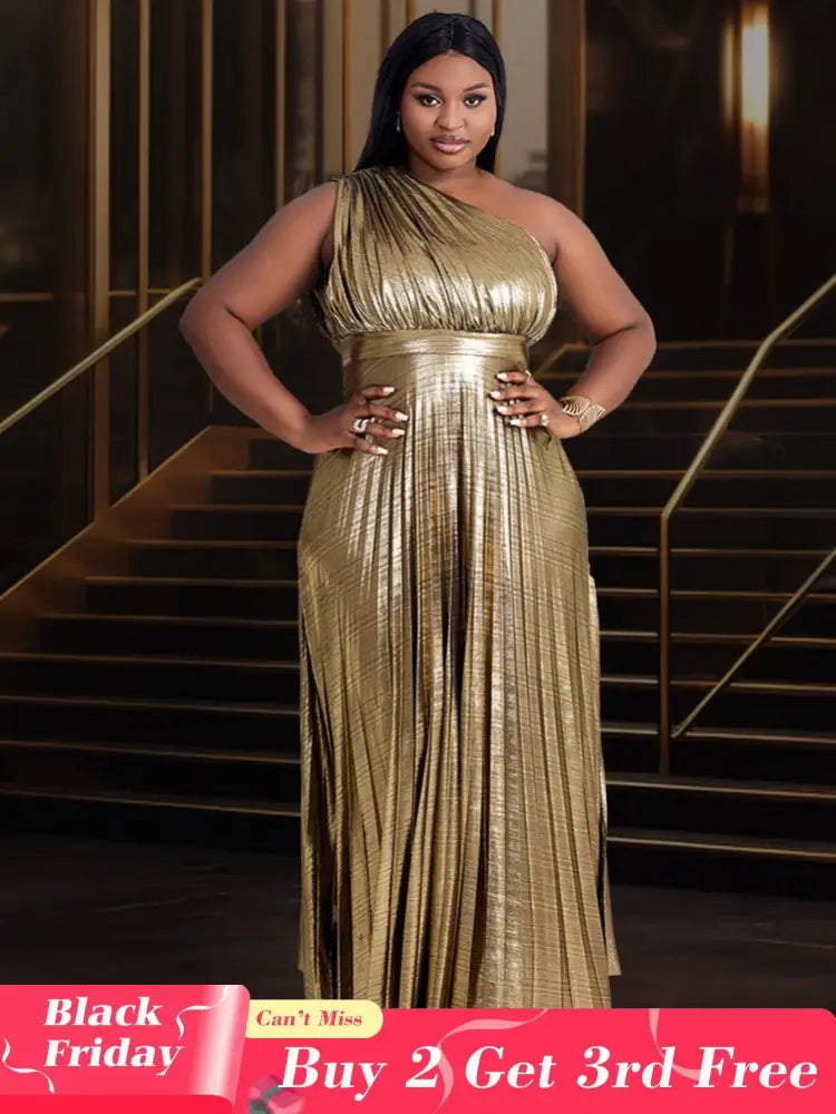 AOMEIDRESS One Shoulder Party Maxi Dress Shiny Pleated