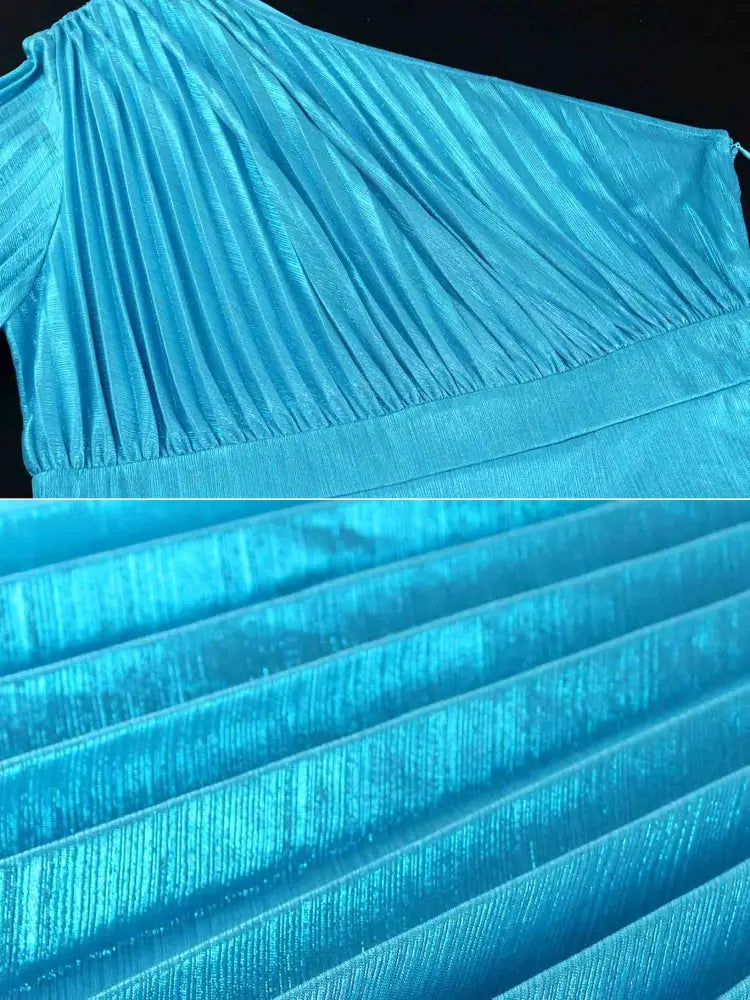AOMEIDRESS One Shoulder Dress Pleated Long Flare Sleeve Package Hip