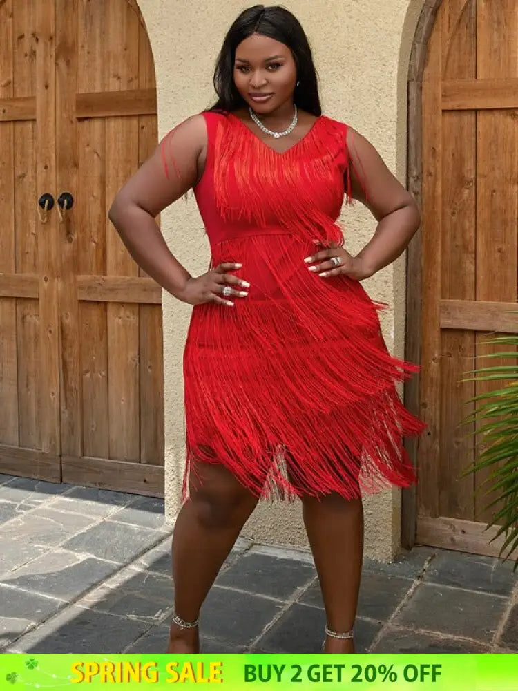 AOMEI Sexy V Neck Sleeveless Fringe Dress Mini
