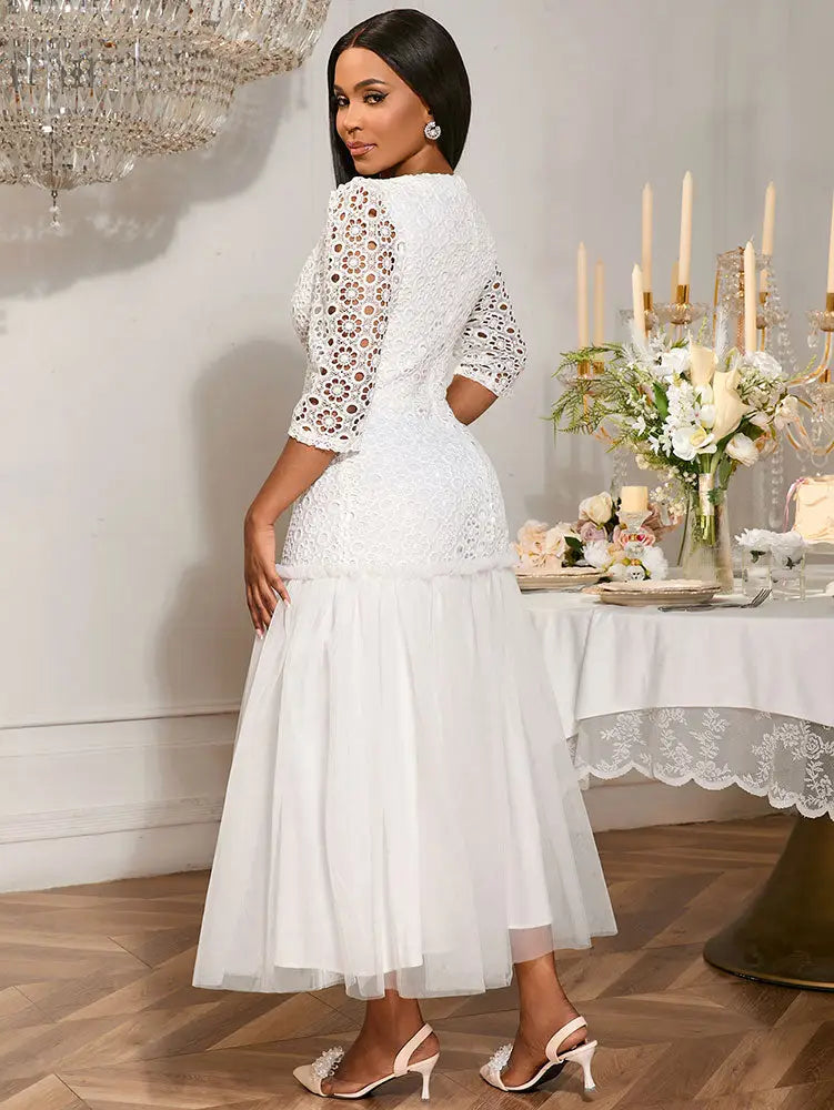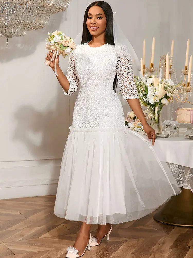 AOMEIDRESS White Lace Bridal Shower Outfit A Line Patchwork Mesh Skirt
