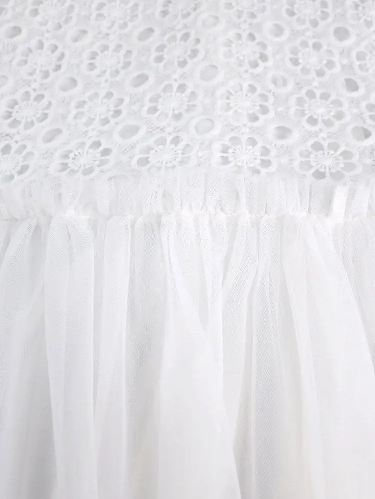 AOMEIDRESS White Lace Bridal Shower Outfit A Line Patchwork Mesh Skirt White / S