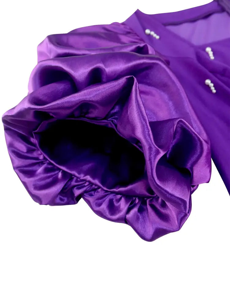 AOMEIDRESS Beaded Dress Short Sleeve Purple Ruffle Bubble Sleeve Square Neck
