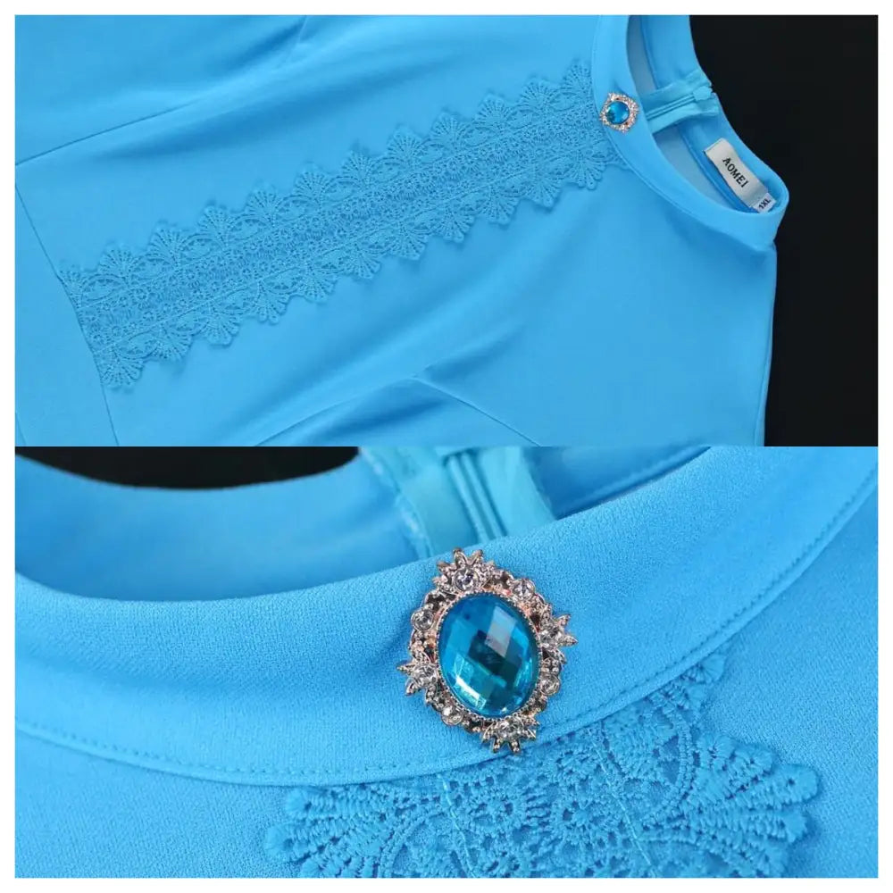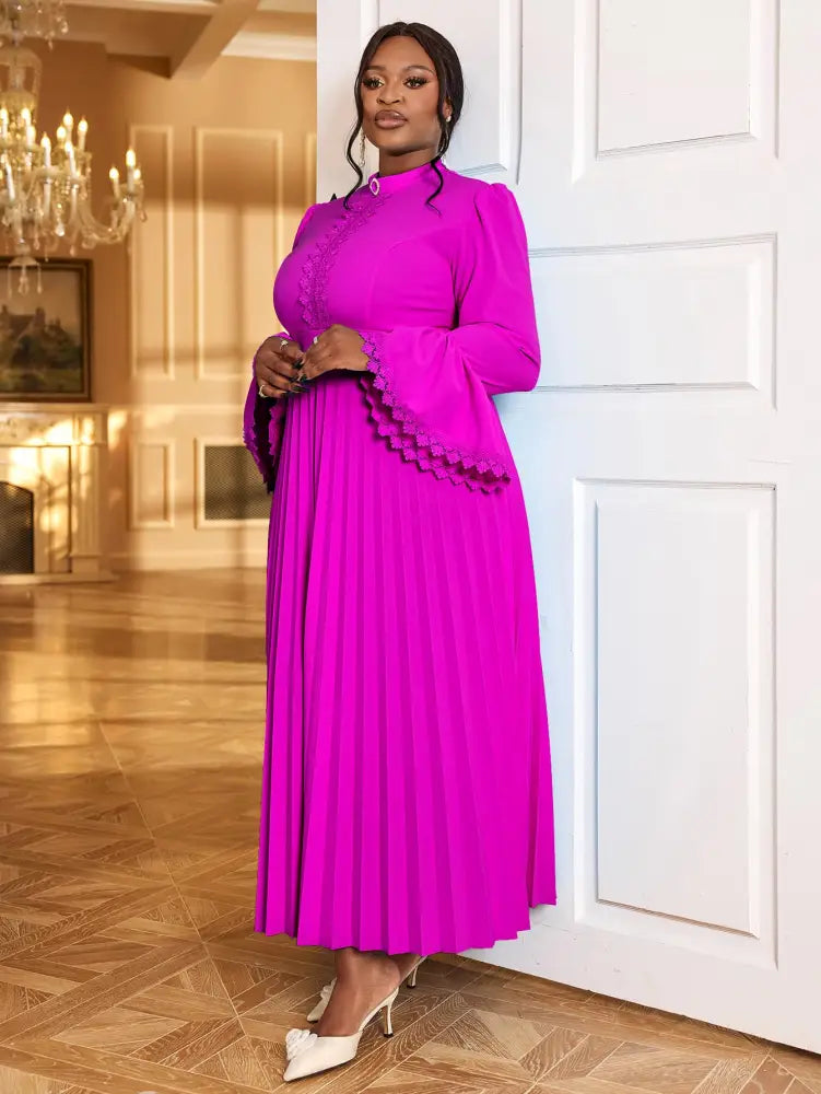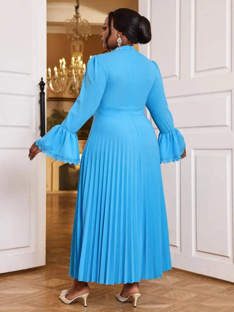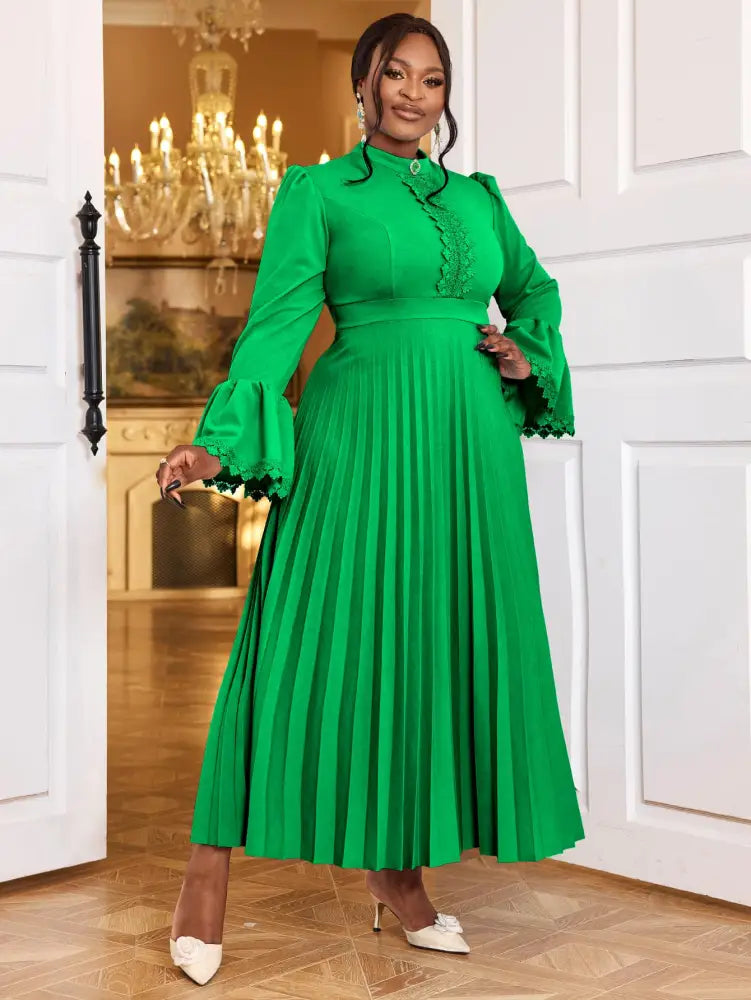 AOMEIDRESS Elegant Maxi Church Dress with Pleat Lace Stand Collar