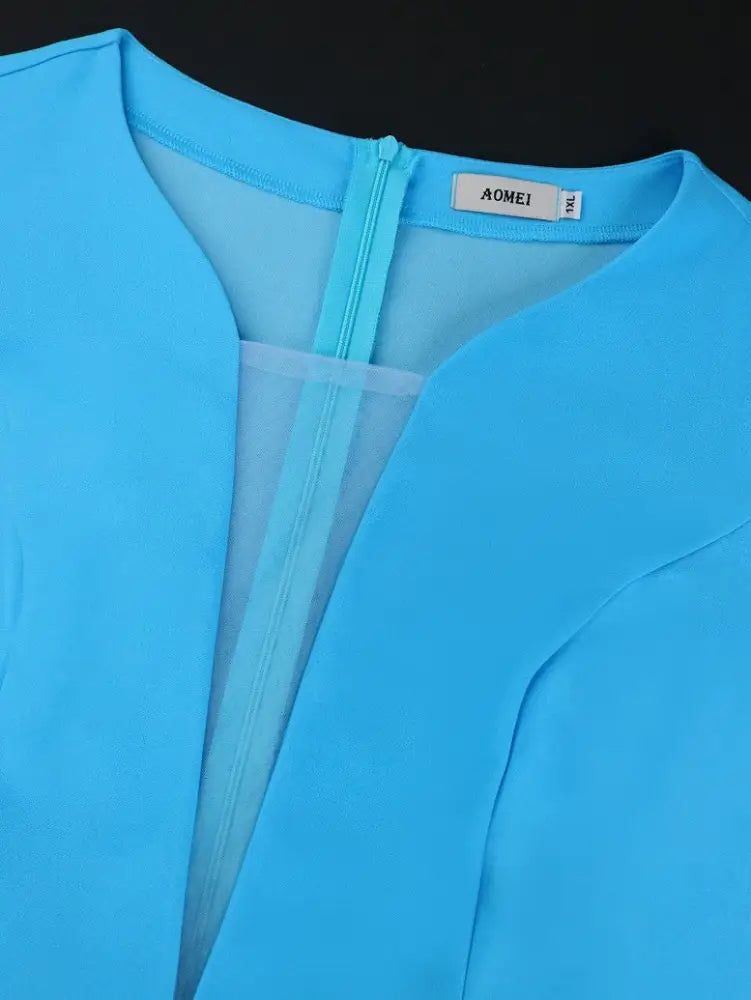 AOMEIDRESS Blue Patchwork Deep V Neck Sleeveless A Line Cake Dress
