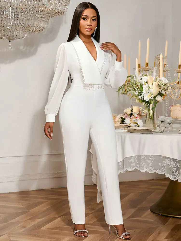 AOMEIDRESS 2025 Party Women Jumpsuit White Formal Elegant Office Wear - White / S is backordered and will ship as soon as it is back in stock.