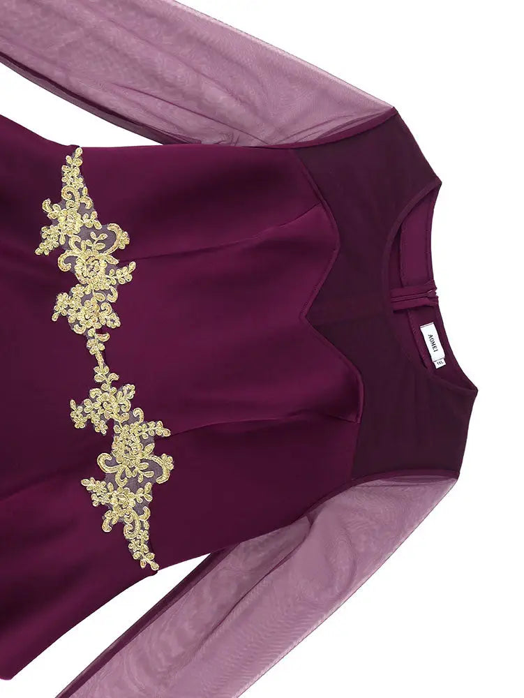 AOMEIDRESS Wedding Party Outfits Church Patchwork Pencil Dress Woman Purple / S