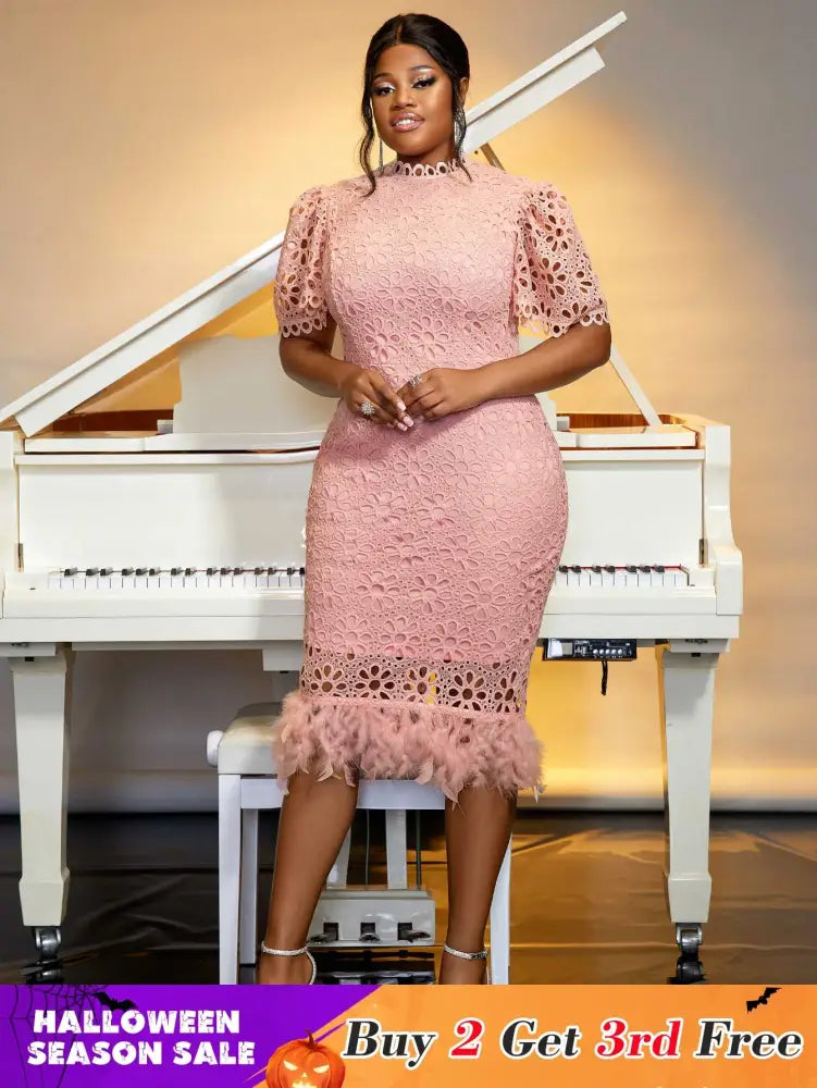 AOMEIDRESS Pink Lace Dresses for Women Bodycon Feather Patchwork - Pink / S is backordered and will ship as soon as it is back in stock.