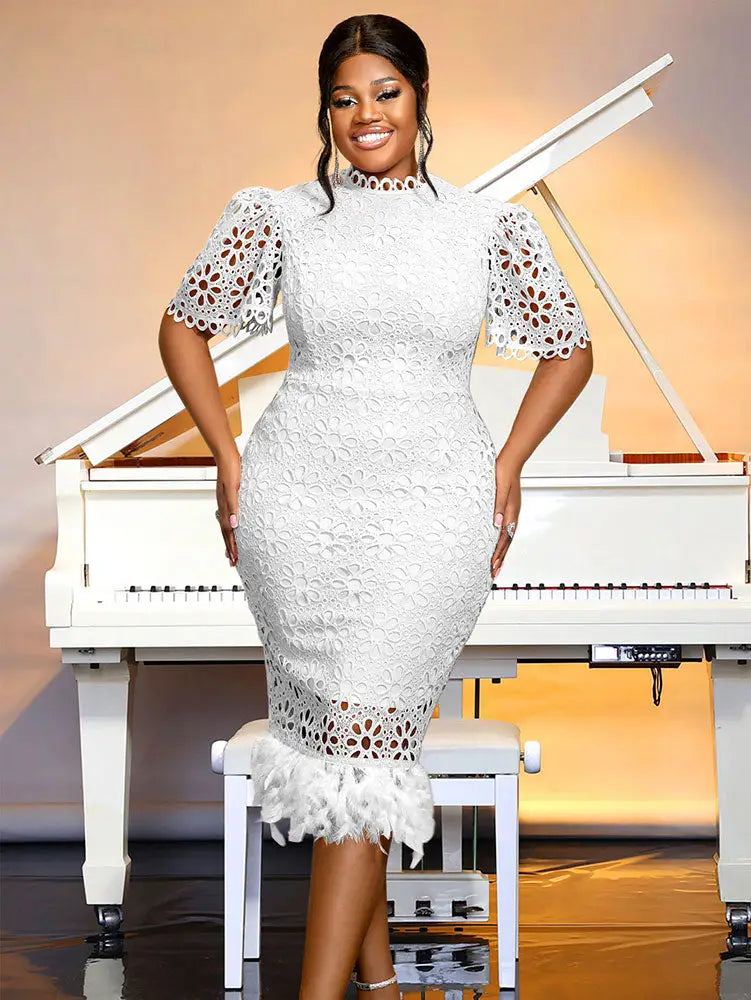AOMEIDRESS Pink Lace Dresses for Women Bodycon Feather Patchwork