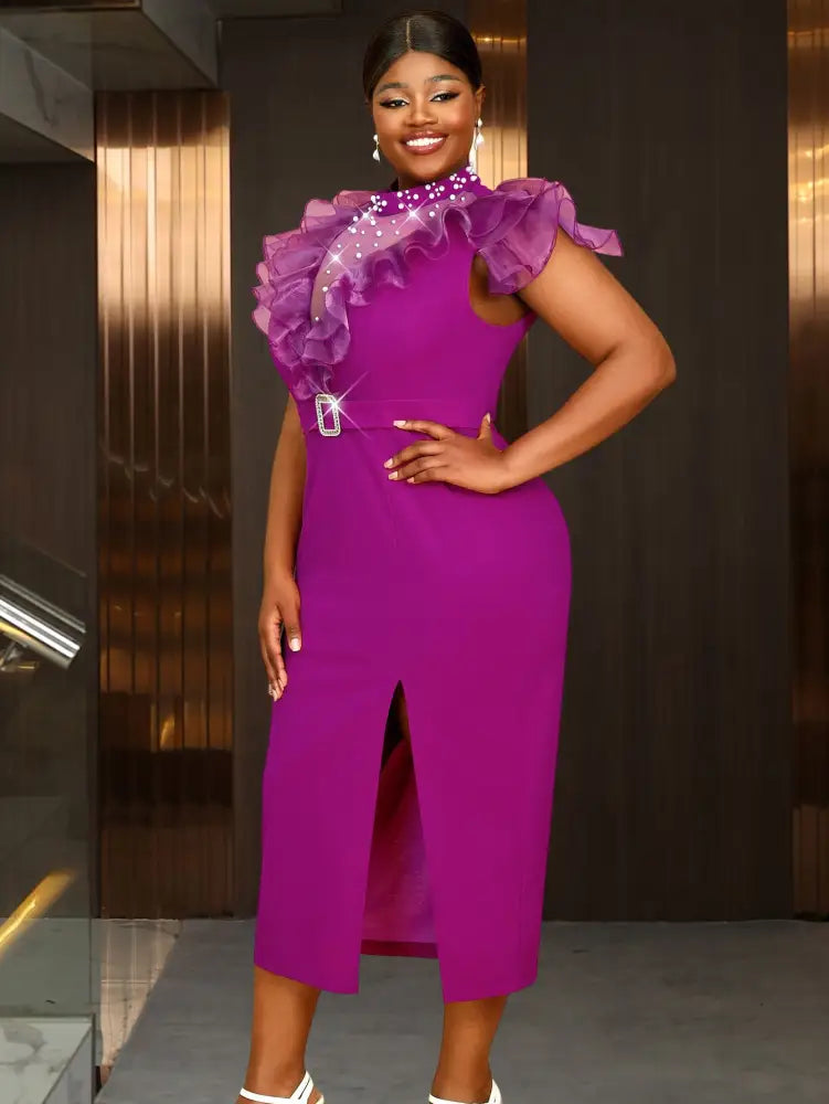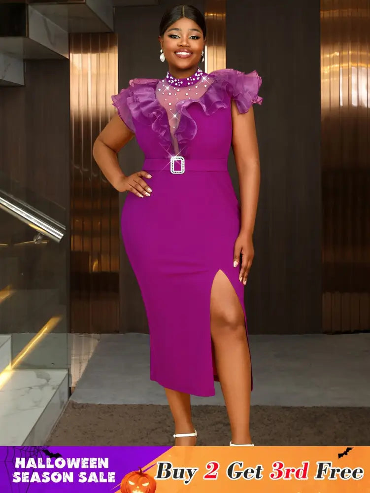 AOMEIDRESS Elegant Wedding Guest Dresses Mesh Patchwork Beaded Split - Purple / 1XL is backordered and will ship as soon as it is back in stock.