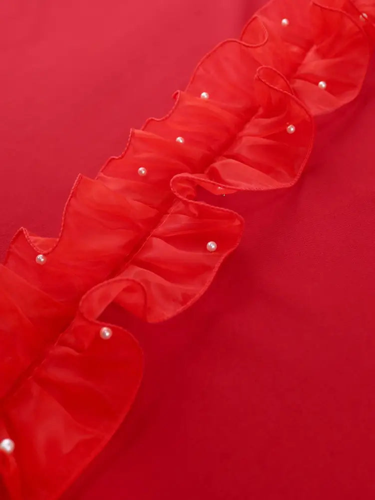 AOMEIDRESS Midi Wedding Guest Dresses Ruffle Lantern Sleeve A Line - Red / 1XL is backordered and will ship as soon as it is back in stock.