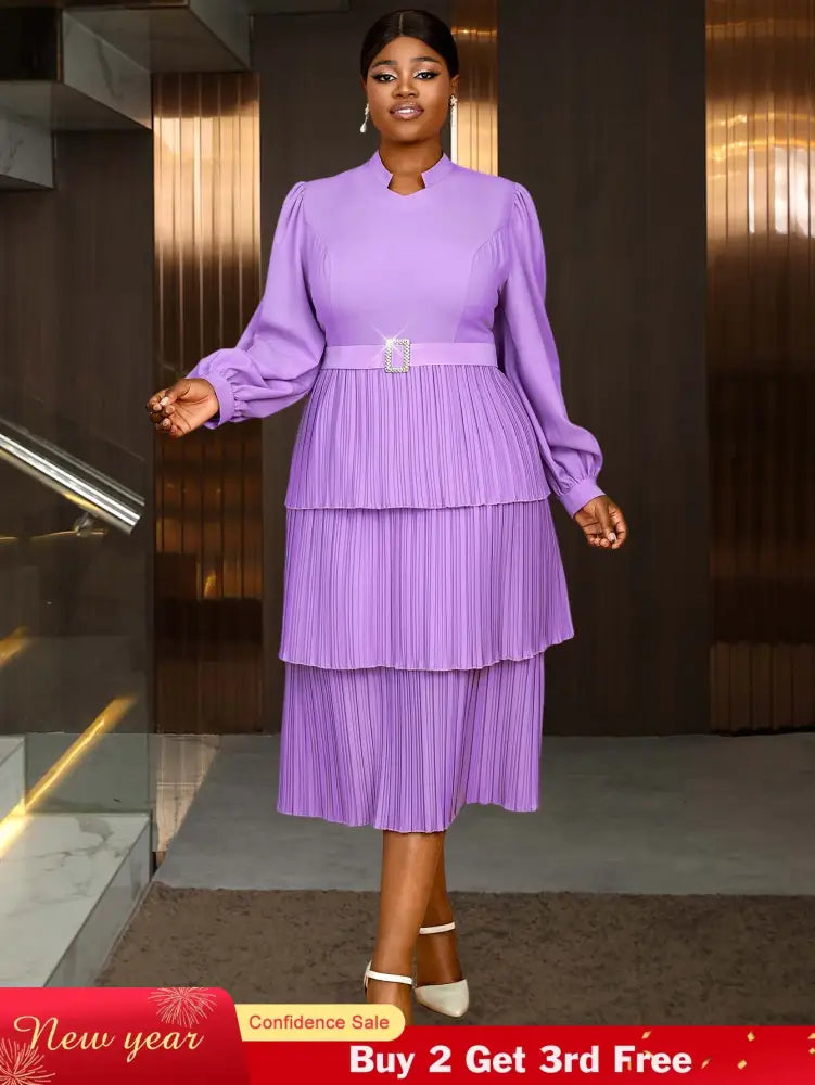 AOMEIDRESS spring wedding dresses Chiffon Lantern Sleeves Pleated Purple