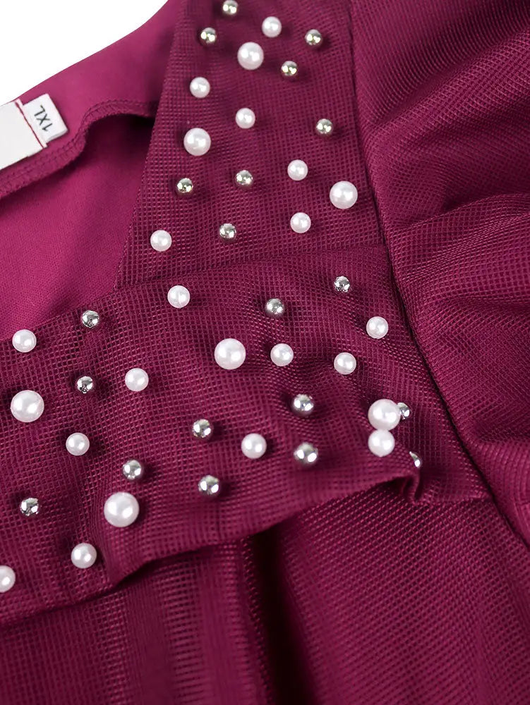 AOMEIDRESS A Line Party Dresses Beading Ruffles Sleeves Lining With Waist Buckle Elegant Curve Ladies Wine / S