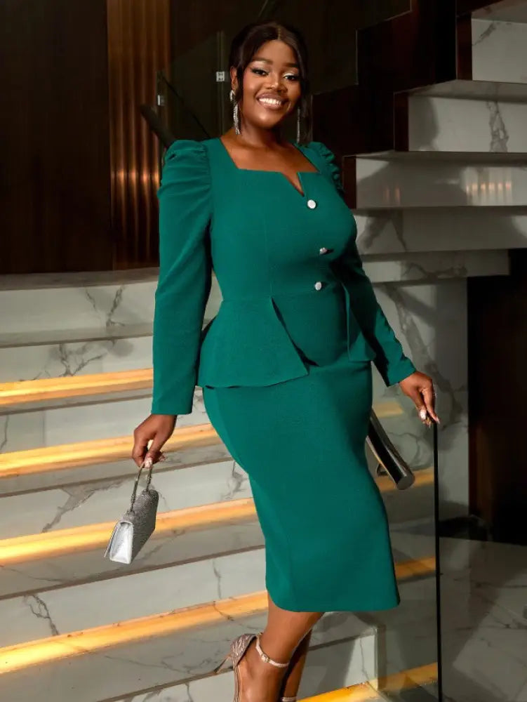 AOMEIDRESS Graceful Midi Dress V Neck Long Sleeves Button Ruffles - Green / S is backordered and will ship as soon as it is back in stock.