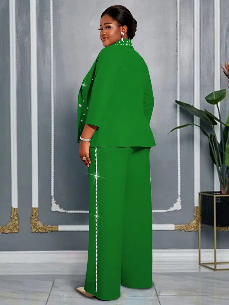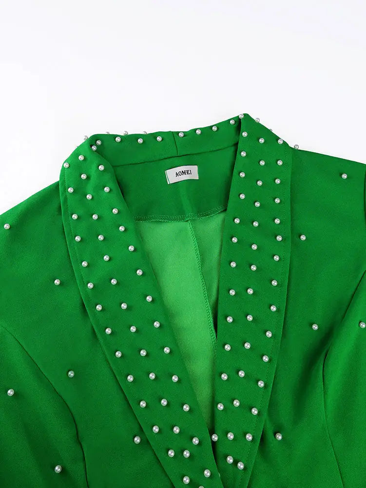 AOMEIDRESS Beading Two Pieces Set Office Ladies Party Classy Suits - Green / L is backordered and will ship as soon as it is back in stock.