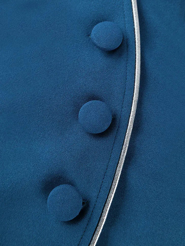 AOMEIDRESS Elegant Women Church Top V Neck Long Sleeves Trim Peplum PeacockBlue / L