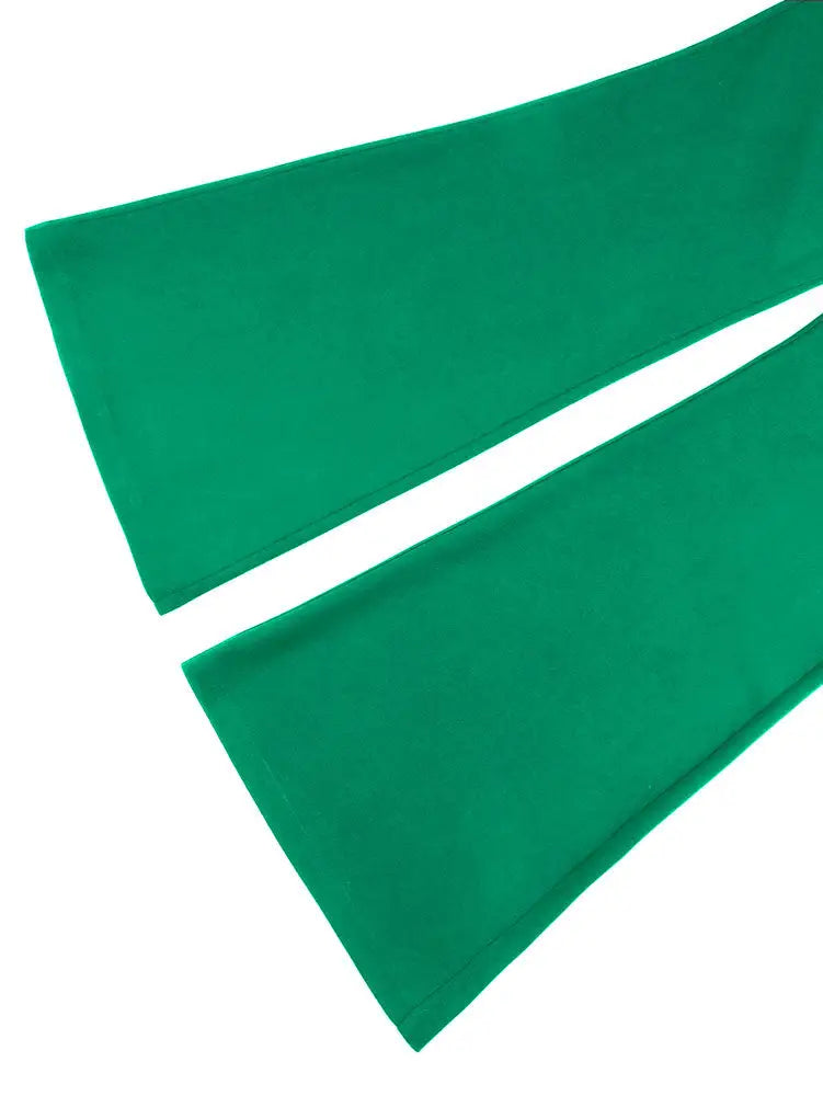 AOMEIDRESS Elegant Two Piece Set V Neck Peplum Tops Wide Leg Pants Green / S
