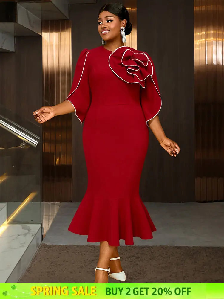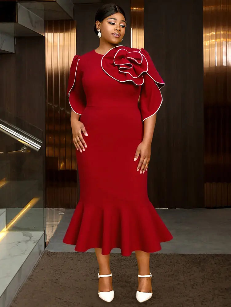 AOMEIDRESS Bodycon Red Mermaid Dress with 3D Flower for Wedding Party
