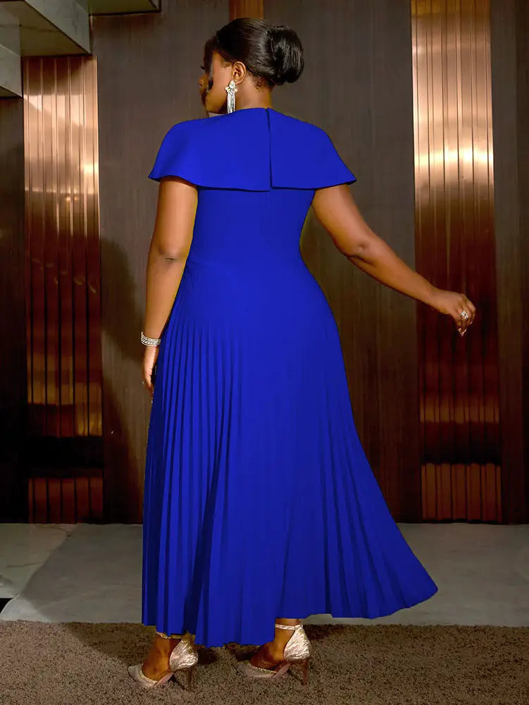 AOMEIDRESS Elegant A Line Church Dresses O Neck Pleated Cape Sleeve - Blue / 0XL is backordered and will ship as soon as it is back in stock.
