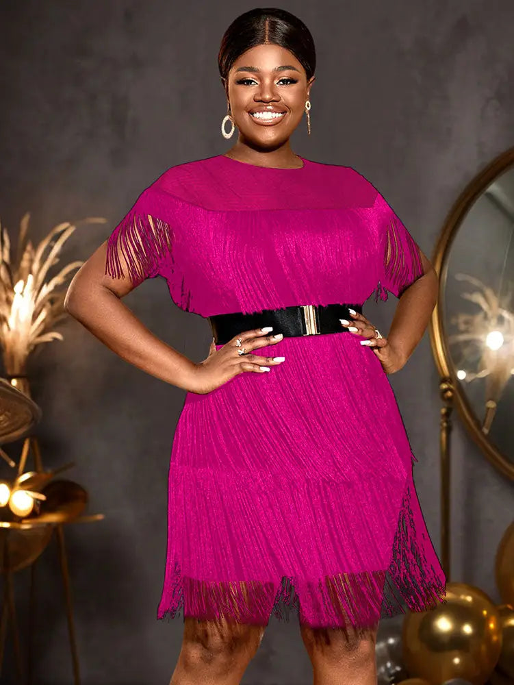 AOMEIDRESS Elegant Luxury Mini Tassels Wedding Guest Dresses O Neck
