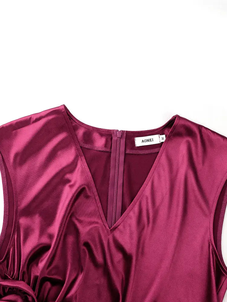 AOMEIDRESS Elegant Satin Sleeveless Dress Side Slit 3D Flower Gowns - Wine / S is backordered and will ship as soon as it is back in stock.