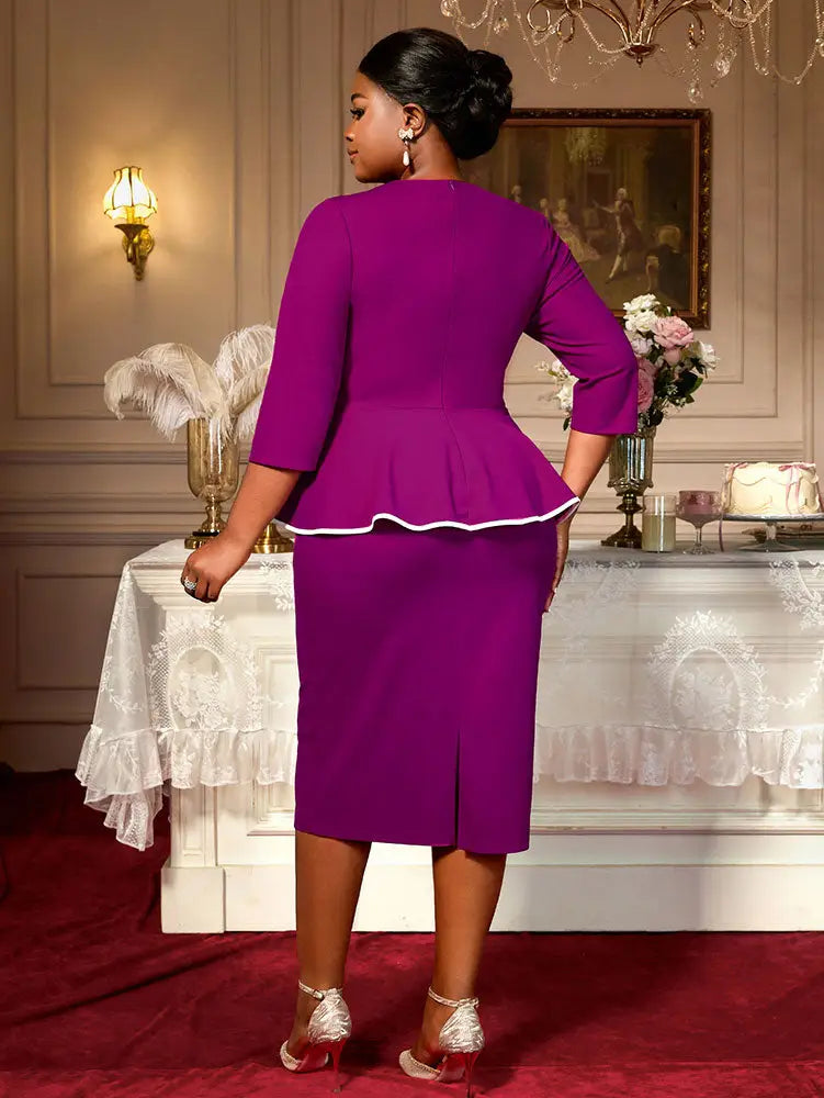 AOMEIDRESS Office Church Party Dresses Beaded Ruffles 3D Decoration - Purple / 0XL is backordered and will ship as soon as it is back in stock.