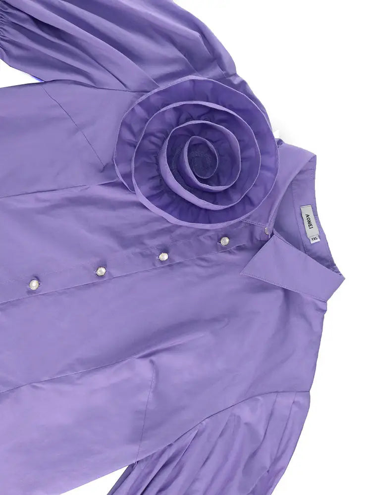 AOMEIDRESS Office Two Piece Set 3D Flower Shirt With A Line Skirt - Purple / S is backordered and will ship as soon as it is back in stock.