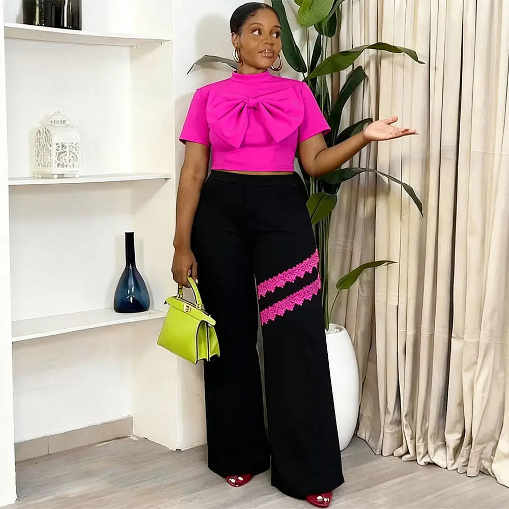 AOMEIDRESS Elegant Women Top Crop Top Short Sleeve Big Bow for Party - Rose / S is backordered and will ship as soon as it is back in stock.