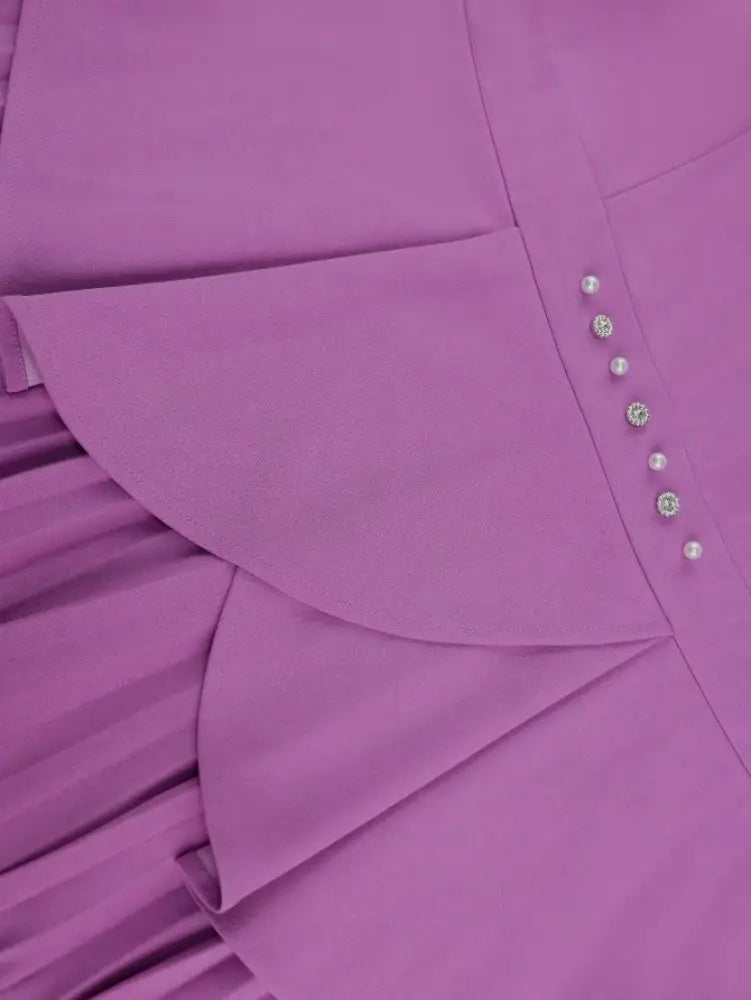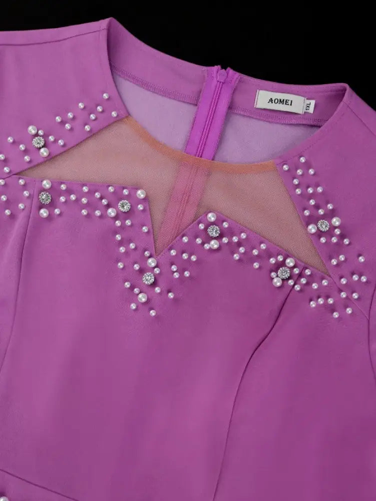 AOMEIDRESS Pleated Dress Patchwork Beading Lantern Sleeves Peplum - Purple / S is backordered and will ship as soon as it is back in stock.