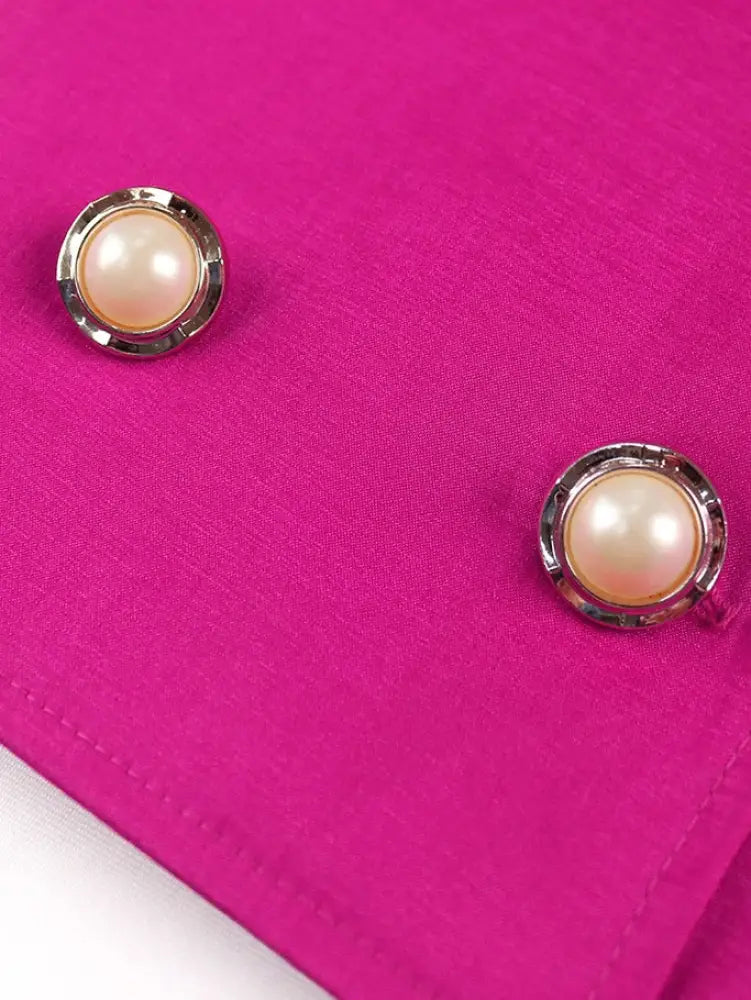 Lantern Sleeves Double Buttons V Neck Shiny Glitter Women's Blouse Tops - Rose / S is backordered and will ship as soon as it is back in stock.