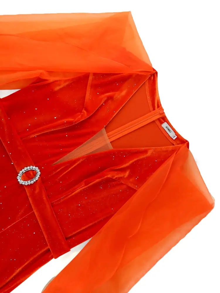AOMEIDRESS Blue Velvet Glitter Christmas Dress V Neck Lantern Sleeves